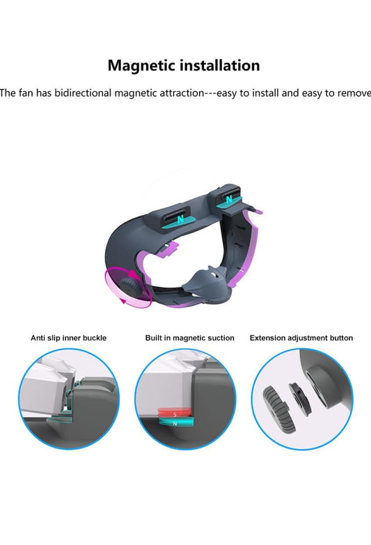 VR Cooling Fan for Meta Quest 3 - Magnetic Dual Fan Face Pad Replacement